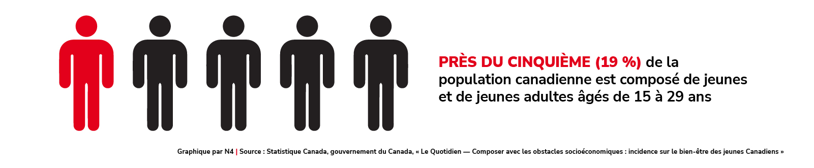 Source : Statistique Canada, gouvernement du Canada, « Le Quotidien — Composer avec les obstacles socioéconomiques : incidence sur le bien-être des jeunes Canadiens », 20 septembre 2023, https://www150.statcan.gc.ca/n1/daily-quotidien/230920/dq230920a-fra.htm.